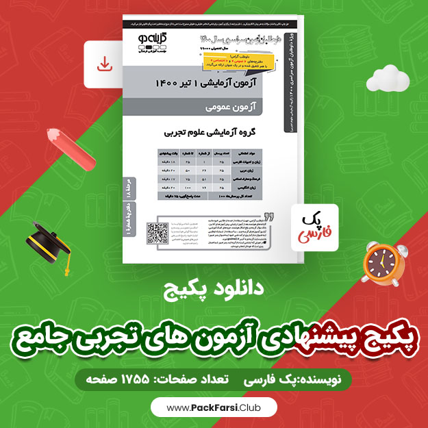 سایت پک فارسی. دانلود PDF پکیج پیشنهادی آزمون های تجربی جامع اثر پک فارسی ۱۷۵۵ صفحه پی دی اف را برای شما دوستان فراهم کرده است. برای دستیابی به بهترین نتیجه در آزمونهای تجربی، داشتن یک پکیج جامع و کامل بسیار اهمیت دارد. این پکیج باید تمامی جنبههای آزمون را پوشش دهد و به شما کمک کند تا به طور کامل آماده شوید. در ادامه، یک پکیج پیشنهادی جامع برای آزمونهای تجربی ارائه شده است. با سایت پک فارسی همراه باشید.