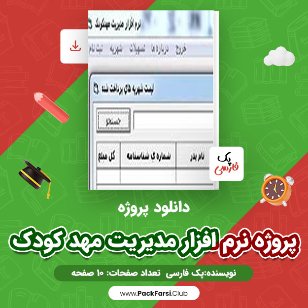 سایت پک فارسی. دانلود PDF پروژه نرم افزار مدیریت مهد کودک اثر پک فارسی ۱۰ صفحه پی دی اف را برای شما دوستان فراهم کرده است. یک ایده عالی برای یک پروژه کاربردی! ساخت نرم افزار مدیریت مهد کودک با ویژوال بیسیک میتواند به شما کمک کند تا مهارتهای برنامهنویسی خود را تقویت کرده و یک ابزار مفید برای مهدکودکها ایجاد کنید. طراحی یک پایگاه داده مناسب برای ذخیره اطلاعات کودکان، پرسنل، هزینهها و سایر دادههای مربوطه. با سایت پک فارسی همراه باشید.