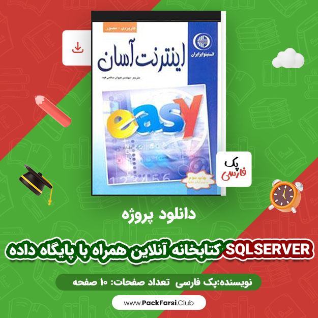 سایت پک فارسی. دانلود PDF پروژه کتابخانه آنلاین همراه با پایگاه داده SQL Server اثر پک فارسی ۱۰ صفحه پی دی اف را برای شما دوستان فراهم کرده است. پروژه کتابخانه آنلاین یک پروژه جذاب و کاربردی است که به شما امکان میدهد تا با مفاهیم برنامهنویسی وب، پایگاه داده و طراحی رابط کاربری آشنا شوید. در این پروژه، شما یک کتابخانه مجازی ایجاد میکنید که کاربران بتوانند کتابها را جستجو، رزرو و مطالعه کنند. با سایت پک فارسی همراه باشید.