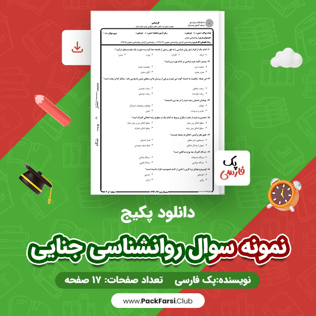 دانلود PDF پکیج نمونه سوال روانشناسی جنایی اثر پک فارسی ۱۷ صفحه