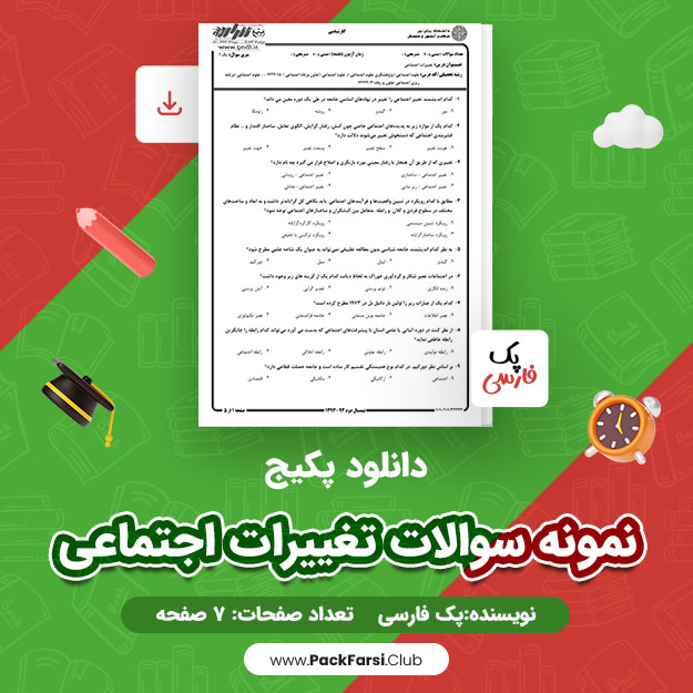 دانلود PDF پکیج نمونه سوالات تغییرات اجتماعی اثر پک فارسی ۷ صفحه