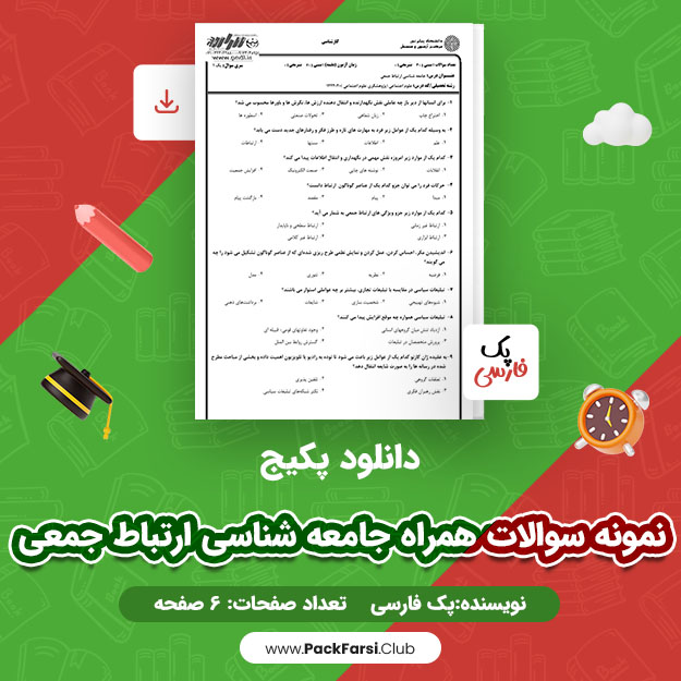 دانلود PDF پکیج نمونه سوالات همراه جامعه شناسی ارتباط جمعی اثر پک فارسی ۶ صفحه